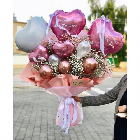 זר גיבסניות ובלונים עם הקדשות אישיות,