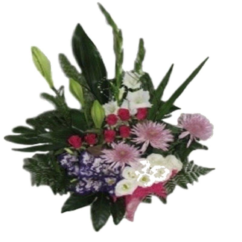 סידור פרחים מעוצב מרהיב ביופיו, שזור מליזיאנטוסים, חרציות ראש, שושן צחור סייפנים, ורדים וכמובן ירק מיוחד. סידור פרחים עשיר מאוד ושזור בצורה מיוחדת ויוקרתית.